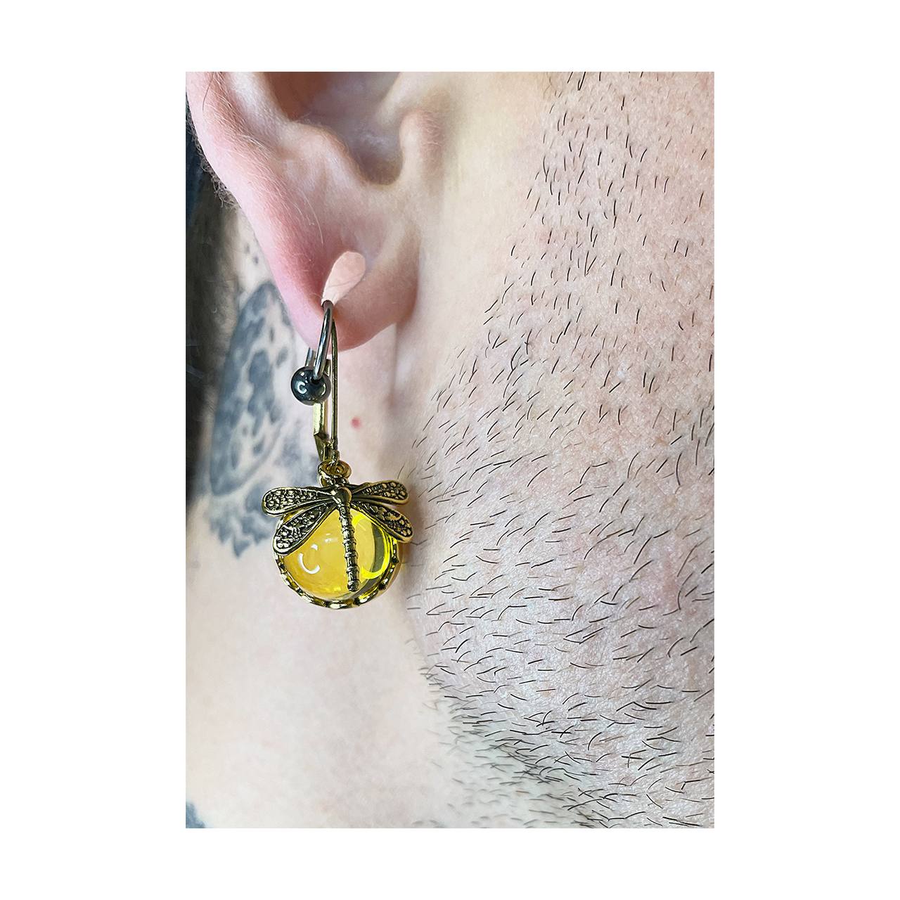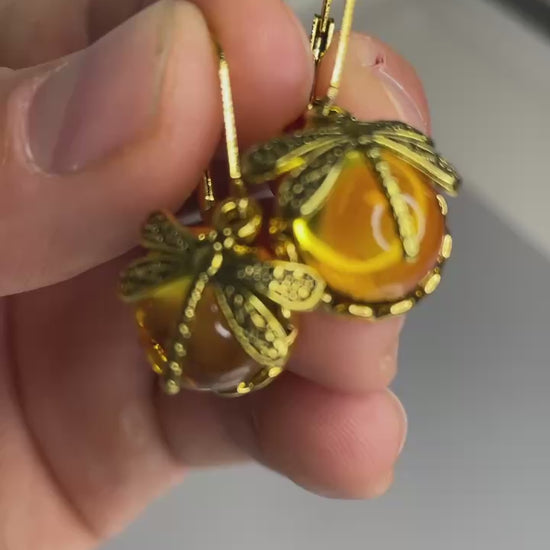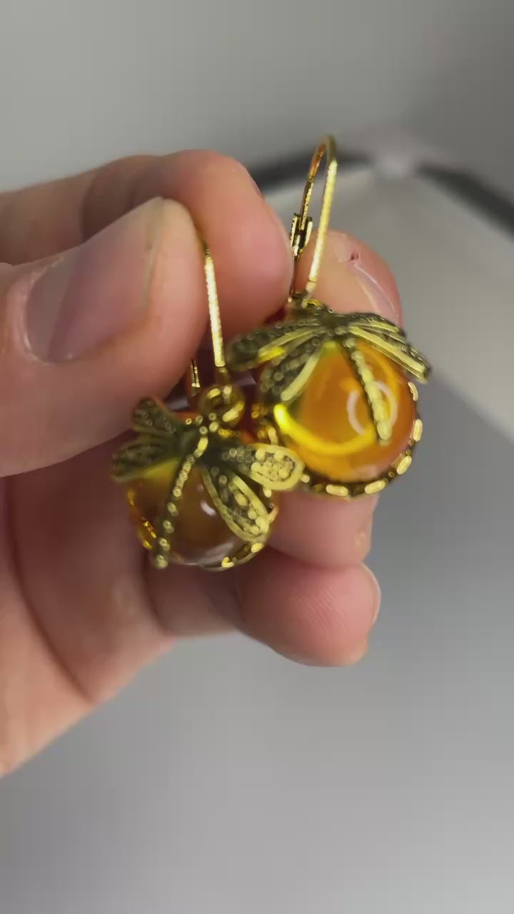 Beautiful earrings, two colours, emerald green and amber 🦋🦋